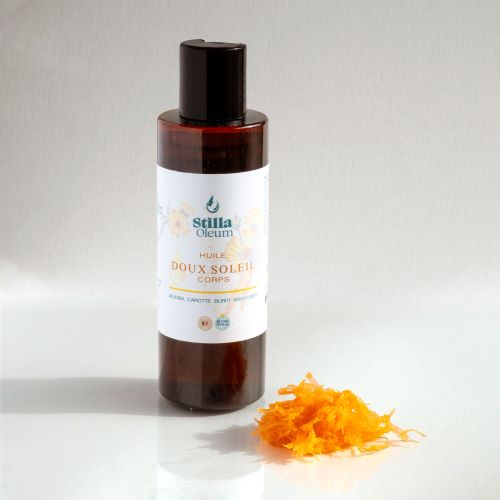 « Doux Soleil » est une huile corporelle 100% naturelle à la carotte conçue pour favoriser un bronzage lumineux et pour préparer la peau aux rayons du soleil. Sa formule exclusive combine les bienfaits de l’huile de jojoba, de l’huile de carotte, de l’huile de buriti et de l’huile d’argousier pour offrir à votre peau une hydratation intense et une protection naturelle.