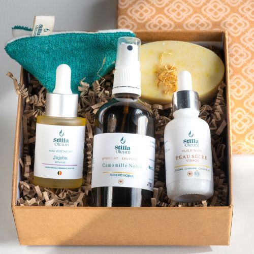 Si vous voulez passez à la cosmétique naturelle avec une routine soin visage complete pour votre peau sèche et sensible. Alors cette stillabox vous permet de découvrir comment prendre véritablement soin de votre peau avec de bons produits. Les produits que je vous propose sont les fruit de mes recherches “au naturel”.