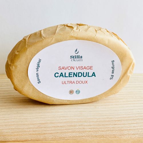 - Savon ultra doux au calendula pour nettoyer la peau du visage sans l’agresser.