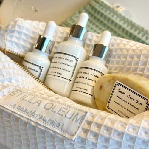 J’ai à cœur de partager avec vous la beauté de la cosmétique naturelle. Une trousse de découverte ou un simplement un cadeau naturel, qui prend soin de nous, de notre peau et de nos cheveux, sans compromis. J’ai créé cette trousse de découverte comme un petit cadeau à offrir ou à s’offrir, pour découvrir mes produits, mes petites créations que j’ai imaginées.